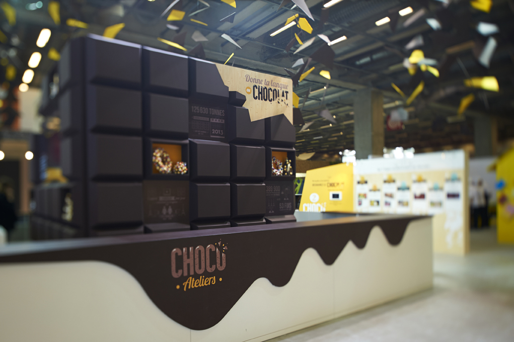 Quel plaisir ce projet : sur un événement imaginé et piloté par Kingcom, l'agence Pierre & Maurice a conçu et produit cette scénographie bénéficiant d'une envolée d'éclats de chocolat, des machines et animations ludiques pour Syndicat Du Chocolat à l'occasion du Salon Du Chocolat 2014.