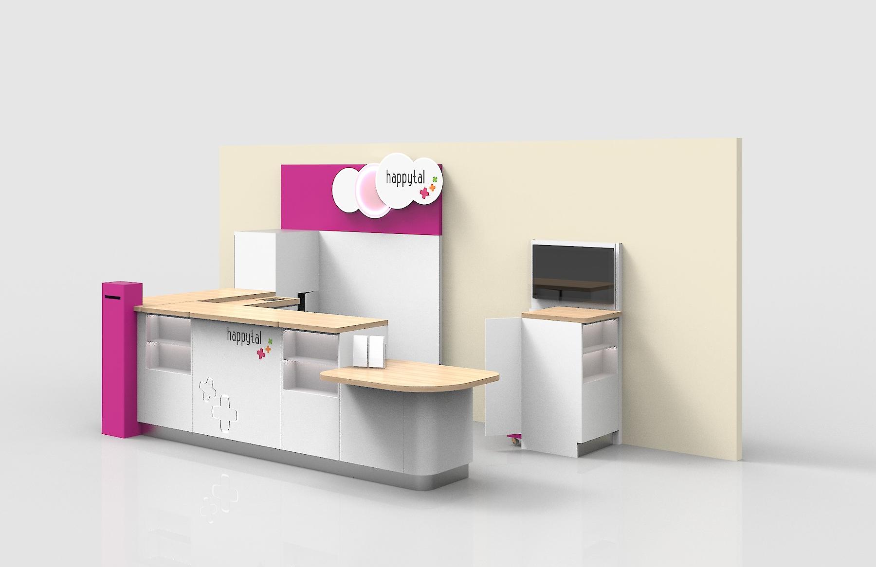 Installer des comptoirs de conciergerie dans les hôpitaux pour adoucir le séjour des patients, est la mission que la startup Happytal s’est confiée. Un accompagnement qui nécessitait un espace d’accueil design et sur mesure.