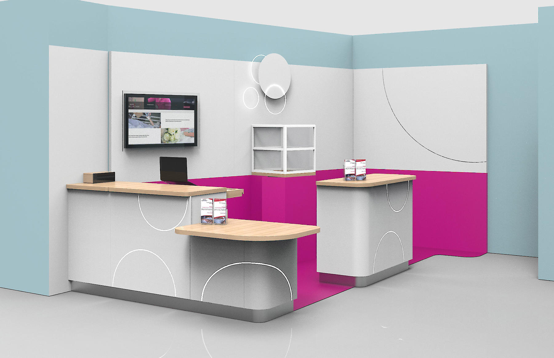 Installer des comptoirs de conciergerie dans les hôpitaux pour adoucir le séjour des patients, est la mission que la startup Happytal s’est confiée. Un accompagnement qui nécessitait un espace d’accueil design et sur mesure.