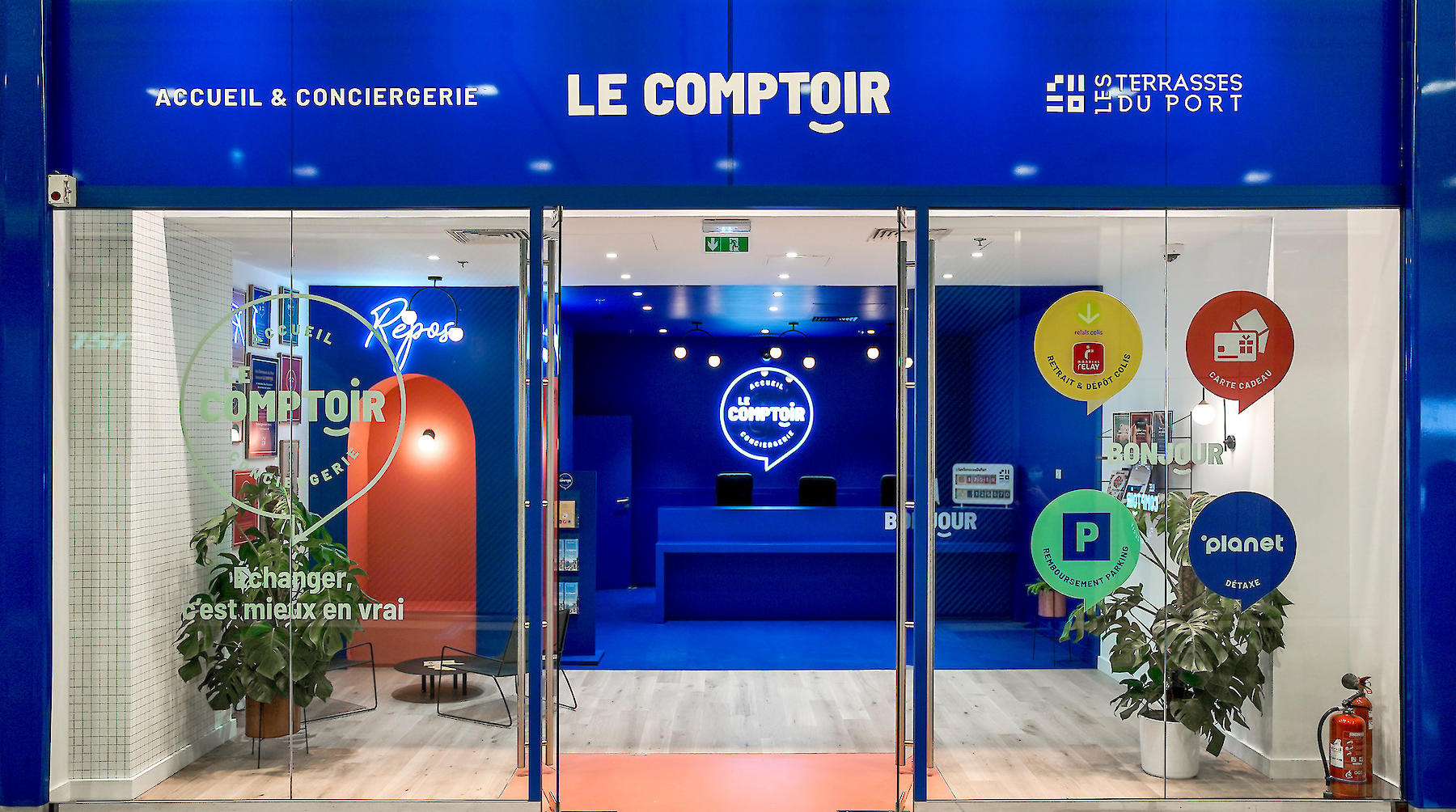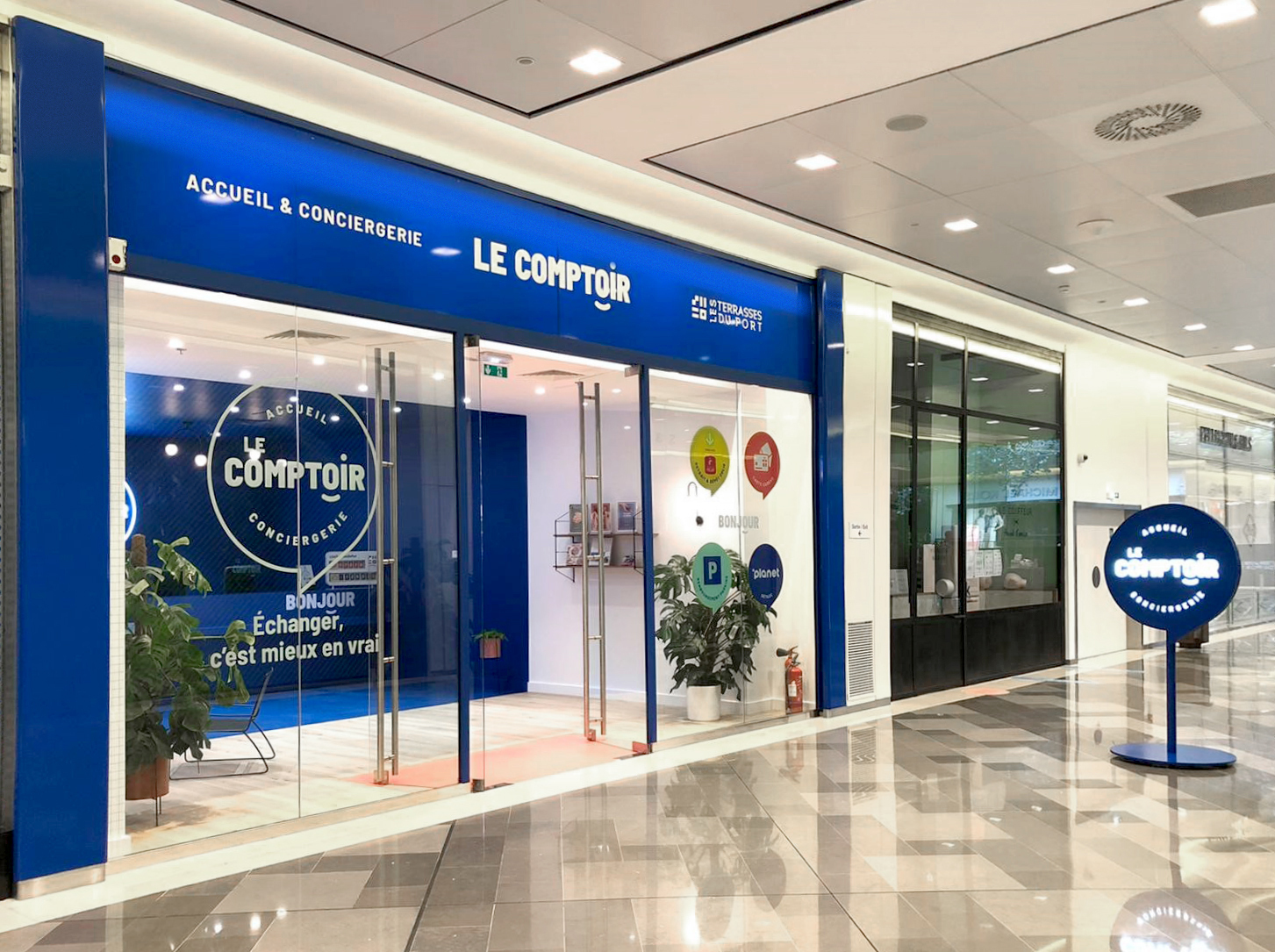 HAMMERSON souhaite développer un nouveau concept de conciergerie moderne, accueillante dont le prototype prendra place dans une cellules libre du centre commercial « les Terrasses du port ». Le déploiement sera national. Le concept d’identité et de mise en espace doivent s'imposer efficacement dans tout environnement architectural (dans tous centres commerciaux) - par une personnalité forte - et s'intégrer aisément dans tout format de cellule.