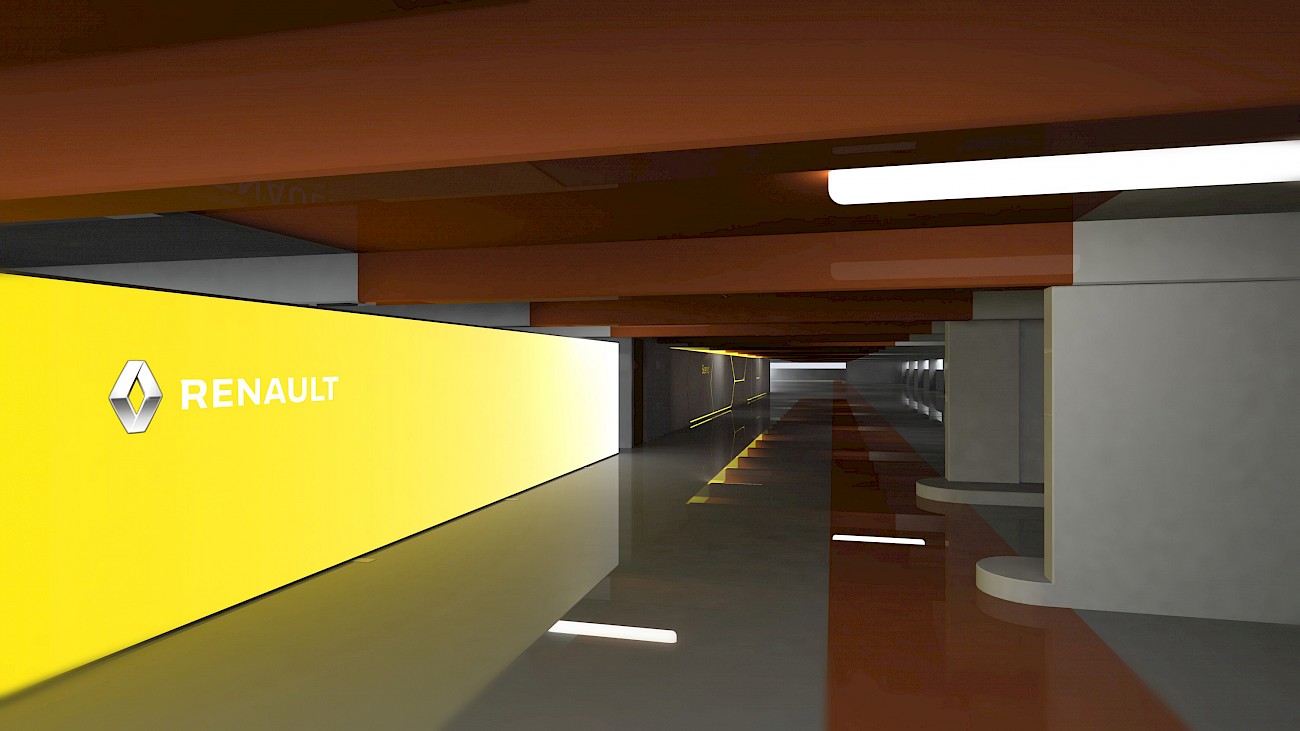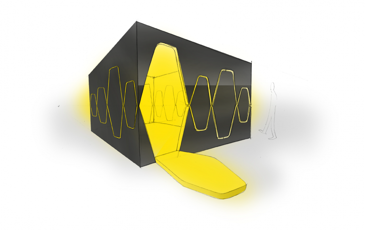 Commande d'Hopscotch : cette fois-ci c'est un parking qui accueille notre scéno pour une scénic. Jouant sur les contrastes, nous offrons de l'inattendu dans ces lieux lugubres et gras. Nous dévoilons progressivement le programme du client dans un écrin doré. Un jeu de cloisons pivotantes et de volets croisés mettent en lumière un espace scénique éblouissant !