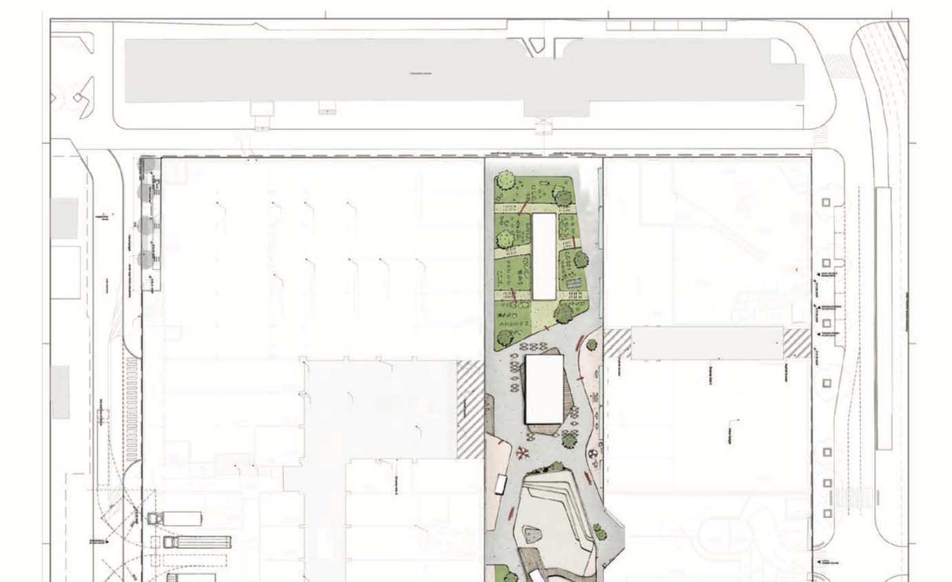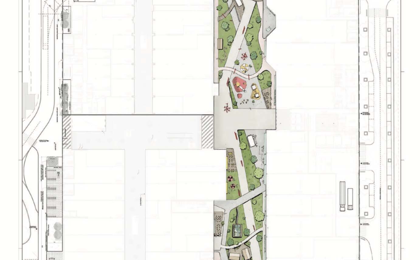 Développement d'un quartier de dialogues et d’initiatives sociales, d'un lieu de rencontre atypique au-dessus des nuages, d'une surface playground. Le tout enrichit avec le design mobilier qui evoque le passé industriel du site.