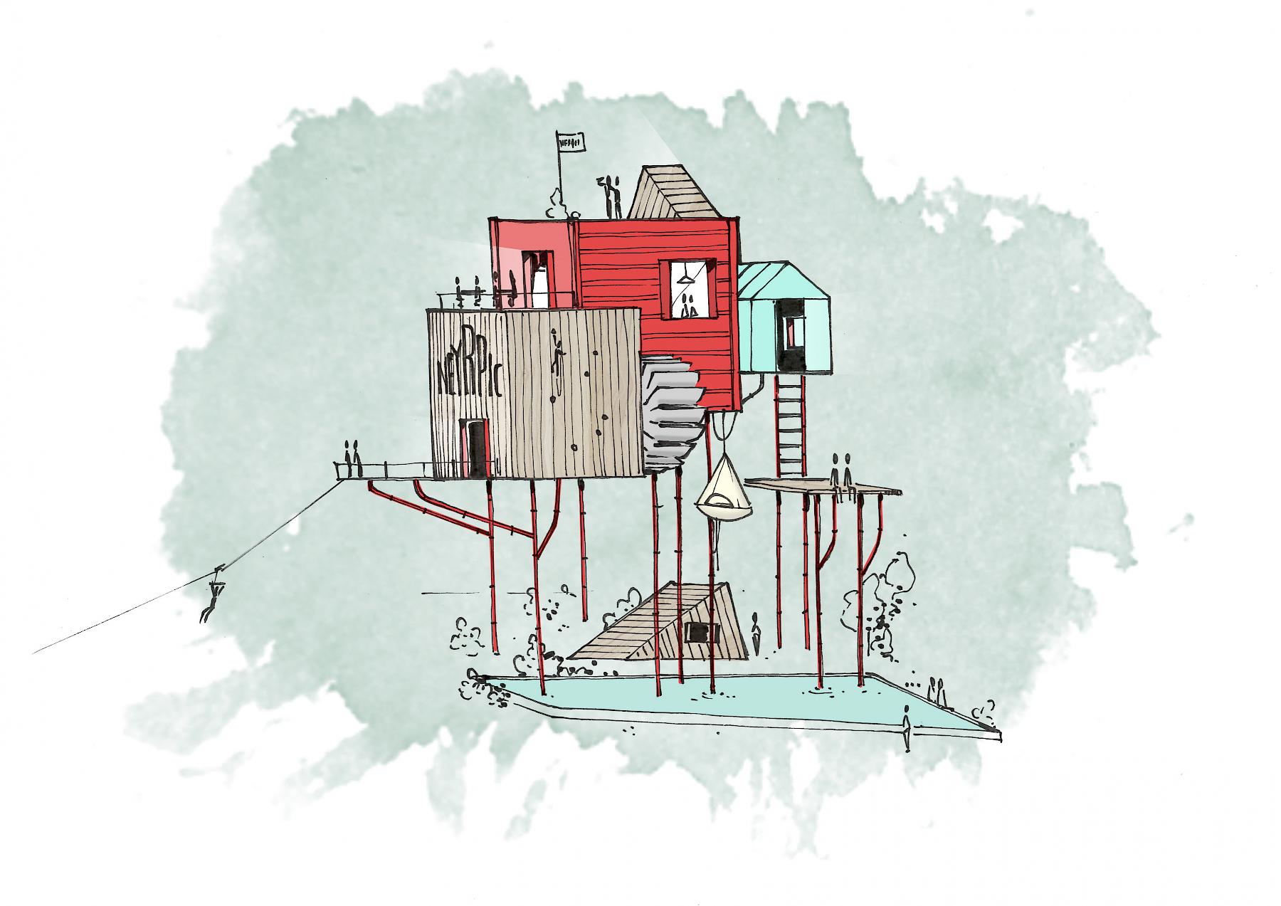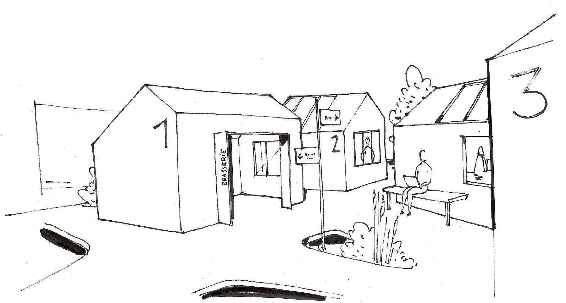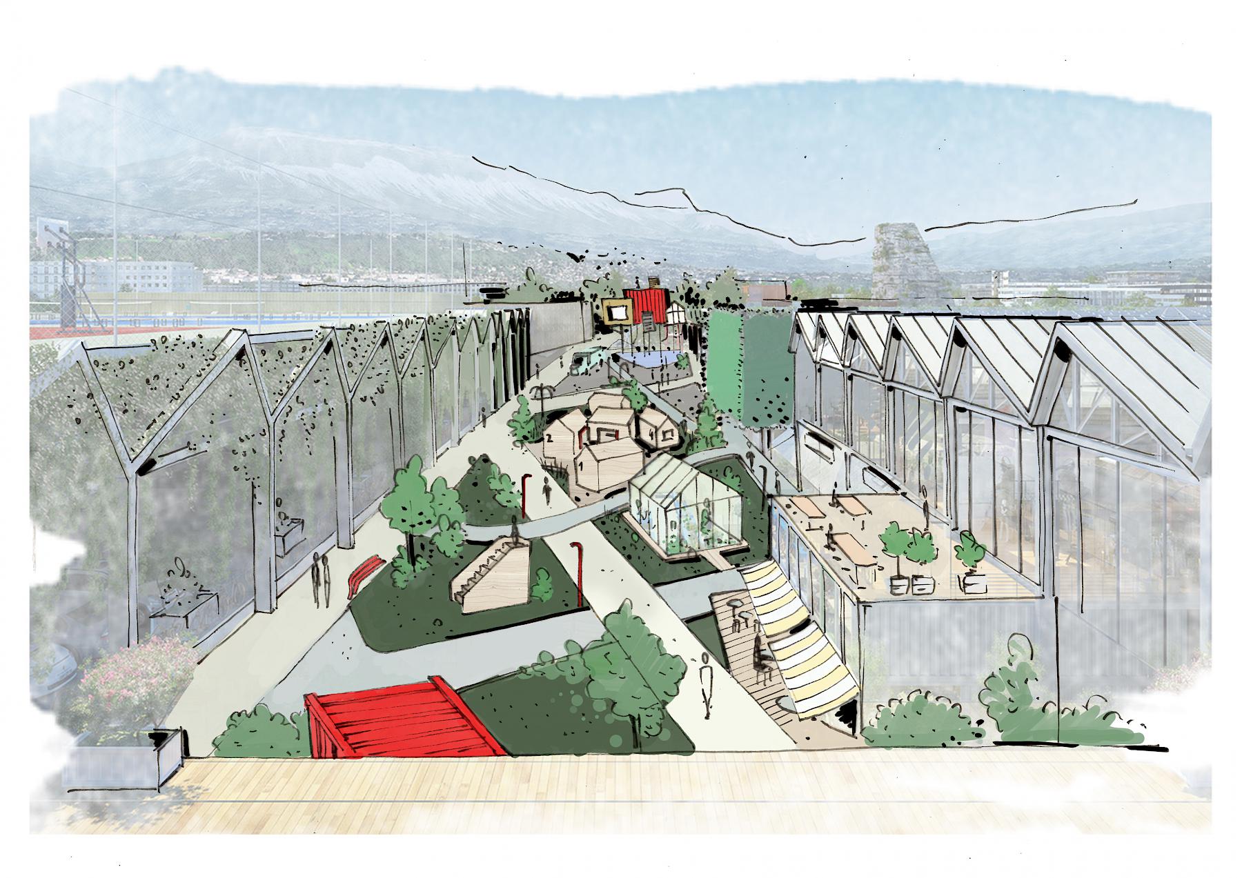 Afin de mettre cela en scène, il a été pensé une architecture vivante pour une bonne circulation des flux. Pierre & Maurice a imaginé un espace pour faire germer de nouvelles idées et nourrir notre besoin de nature grâce à un potager & un café collaboratif ! Nous observons là un village qui répond aux besoins de tous les acteurs à la recherche d’un local pour faire grandir leurs idées.