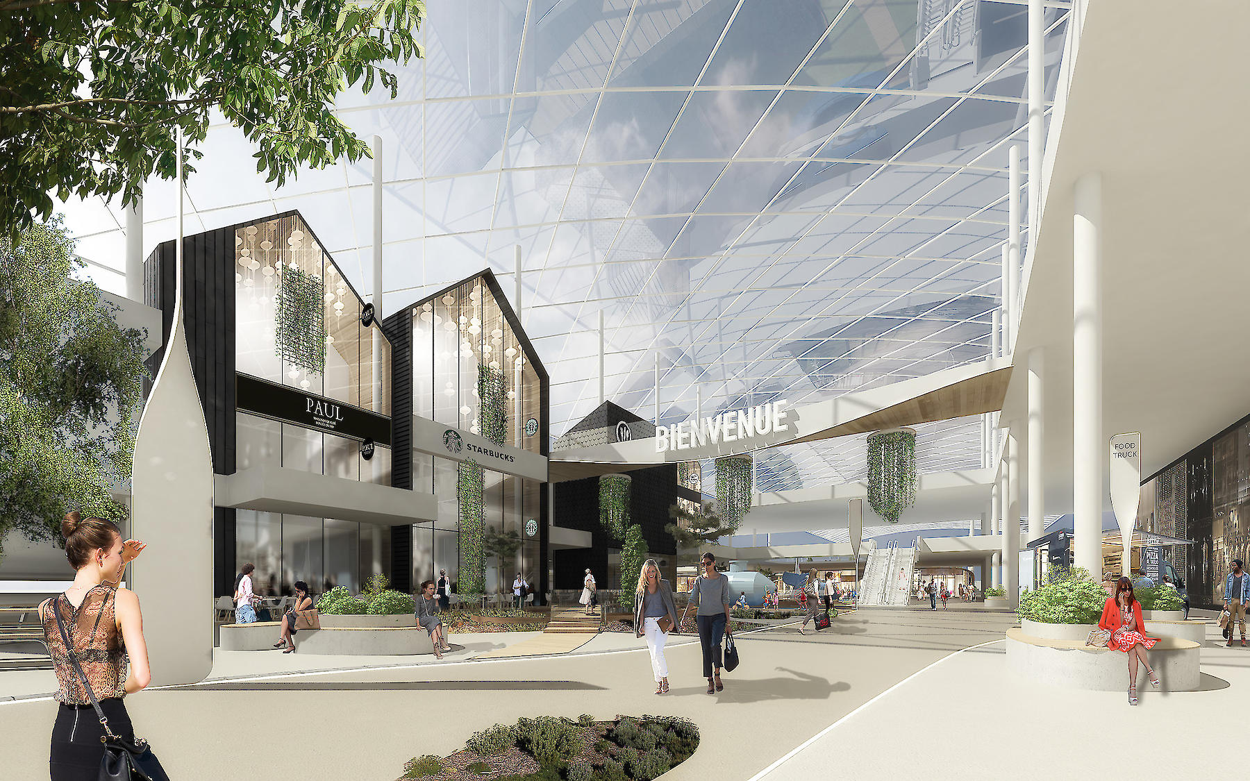 Cette voie verte offre des lieux de vie et de commerces visant tout ce qu'il y a de moderne, de généreuses vitrines, de belles promenades semi-couvertes, des terrasses variées, un agora animé et de très nombreuses poches vertes. Un environnement idéal pour une programmation Retailtainment sous une gigantesque canopée imaginée par Agence Lameynardie.