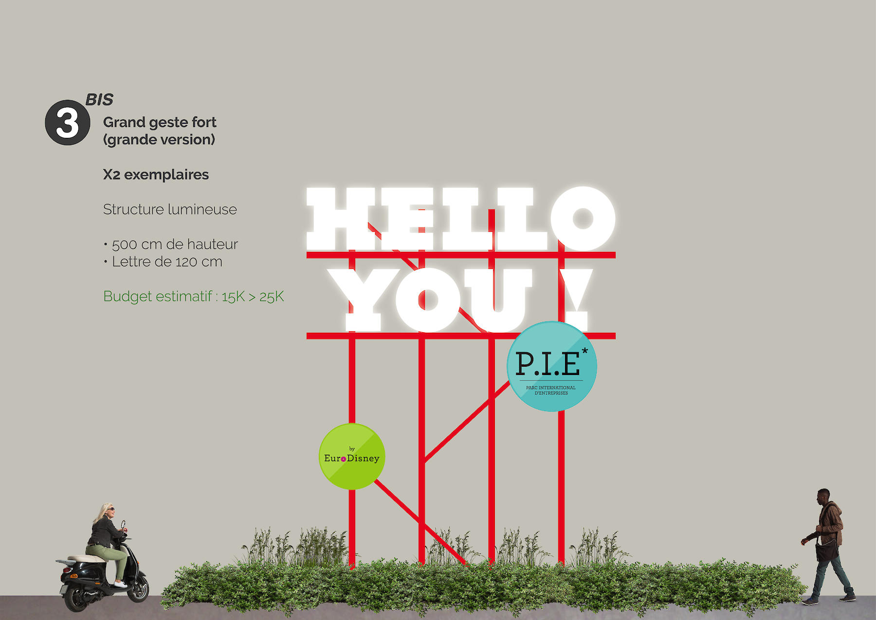 Pour devenir « The place to be », Pierre et Maurice répond aujourd’hui en proposant une pistes doter d’une signalétique forte composée d’une charte graphique cohérente, de panneaux de communications et d’aménagements spécifiques.