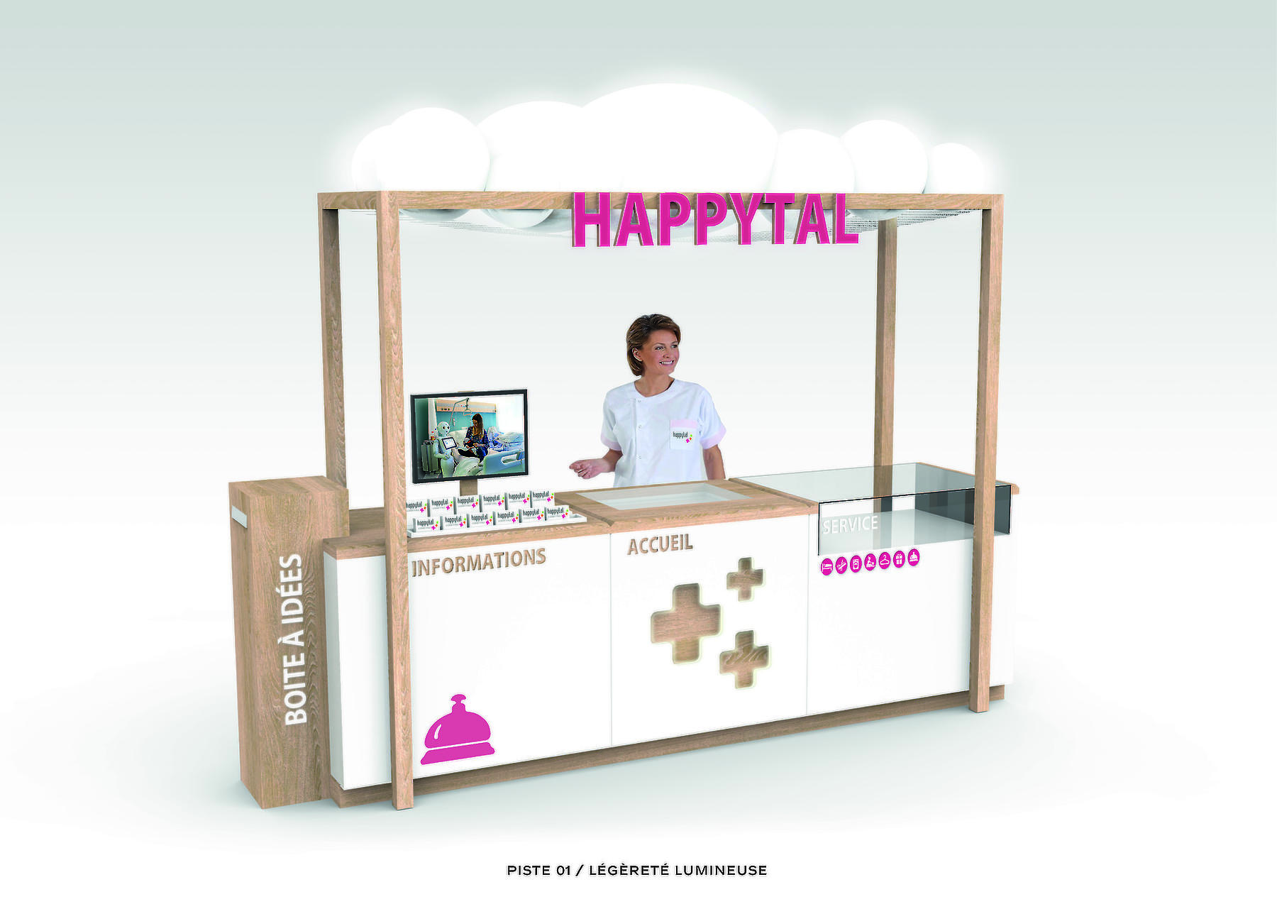Installer des comptoirs de conciergerie dans les hôpitaux pour adoucir le séjour des patients, est la mission que la startup Happytal s’est confiée. Un accompagnement qui nécessitait un espace d’accueil design et sur mesure.