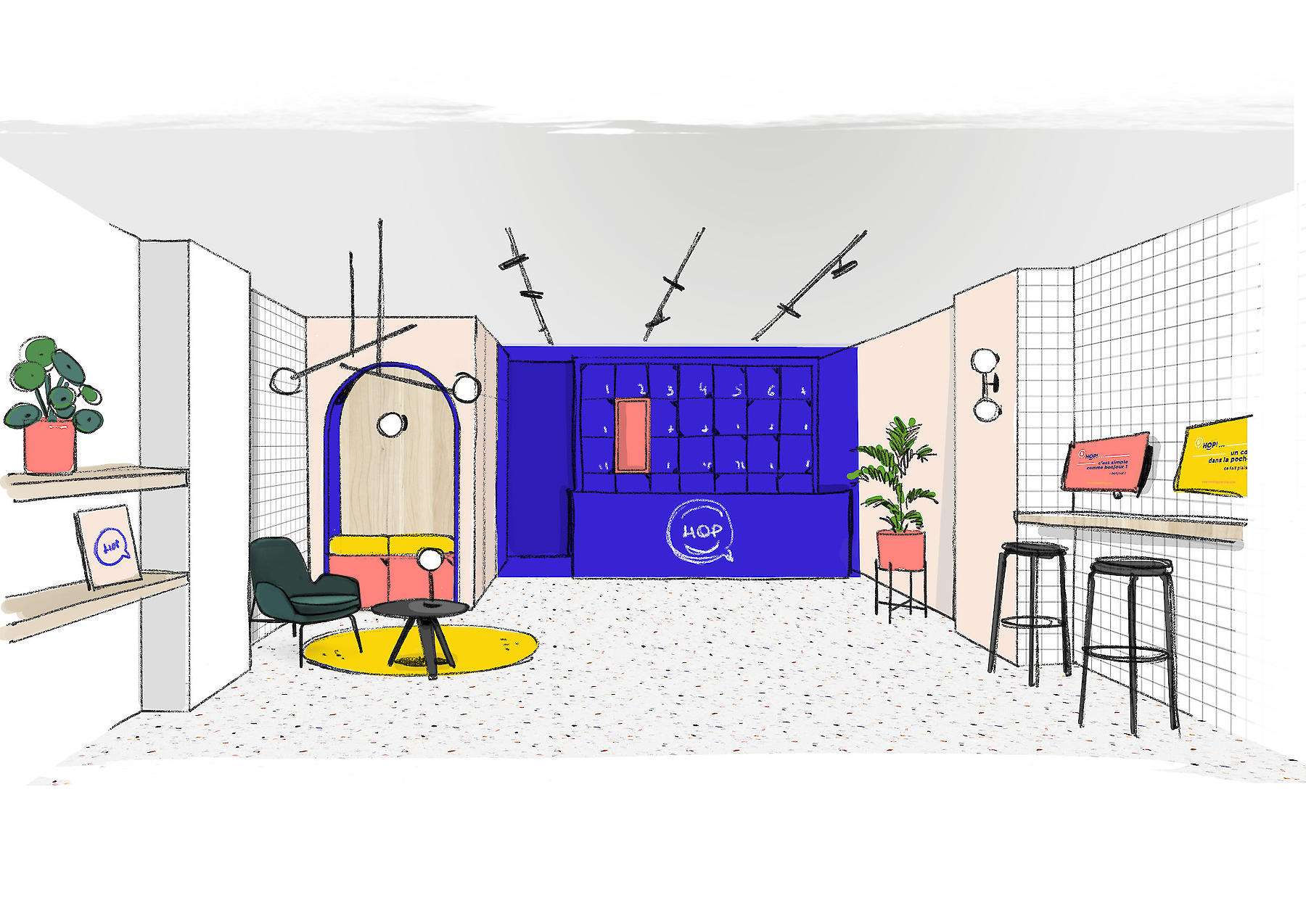 HAMMERSON souhaite développer un nouveau concept de conciergerie moderne, accueillante dont le prototype prendra place dans une cellules libre du centre commercial « les Terrasses du port ». Le déploiement sera national. Le concept d’identité et de mise en espace doivent s'imposer efficacement dans tout environnement architectural (dans tous centres commerciaux) - par une personnalité forte - et s'intégrer aisément dans tout format de cellule.