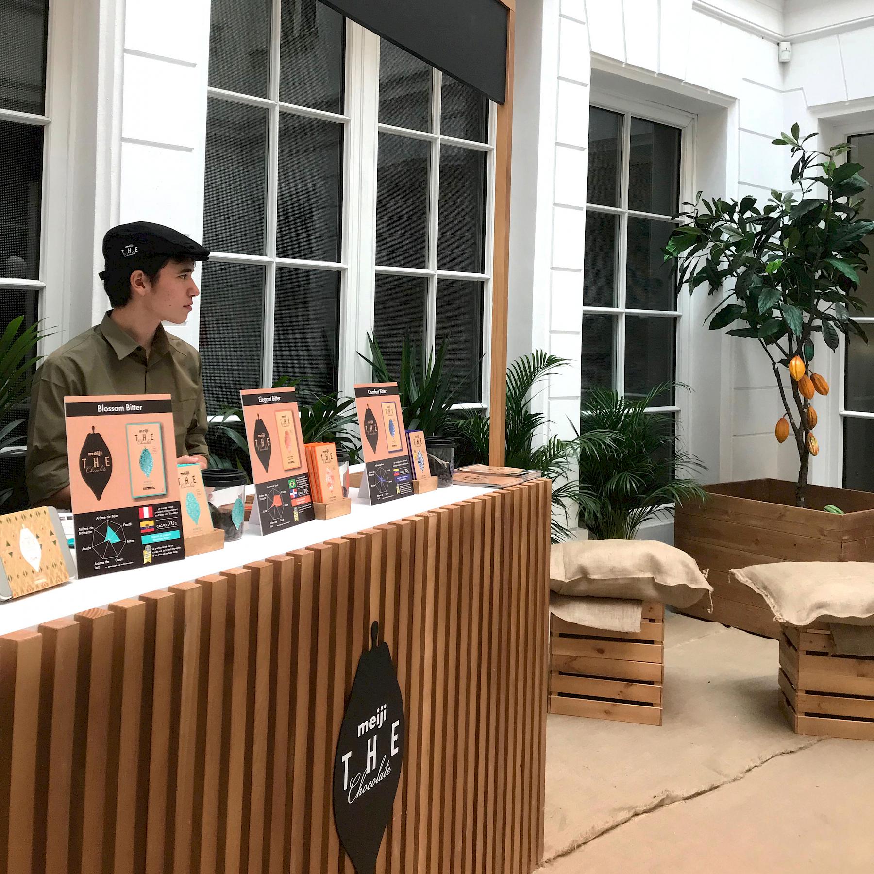 La marque japonaise meiji THE Chocolate s’y est établie le temps d’une scénographie éphémère. C’est avec un linéaire végétal et boisé qu’elle a retracé le procédé mythique de la fabrication du chocolat. Depuis l’arbre cacaoyer au Bean to Bar, meiji THE Chocolate a fait voyager, les visiteurs et leurs papilles, dans une jungle chocolatée.
