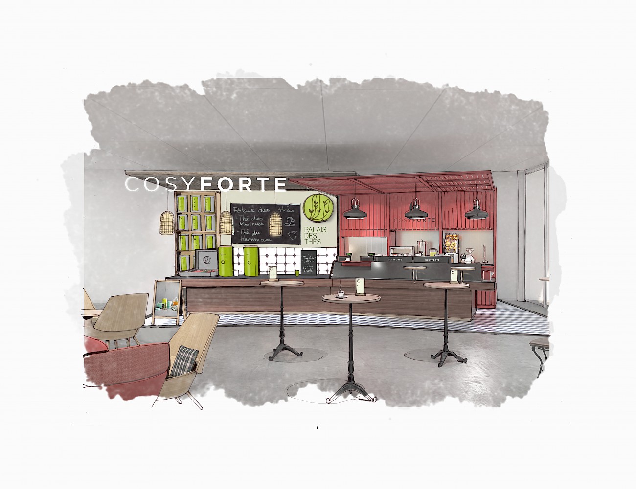 Palais des Thés demande à Pierre & Maurice de concevoir leur corner inscrit dans le concept Cosy Forte Elior en RIE.