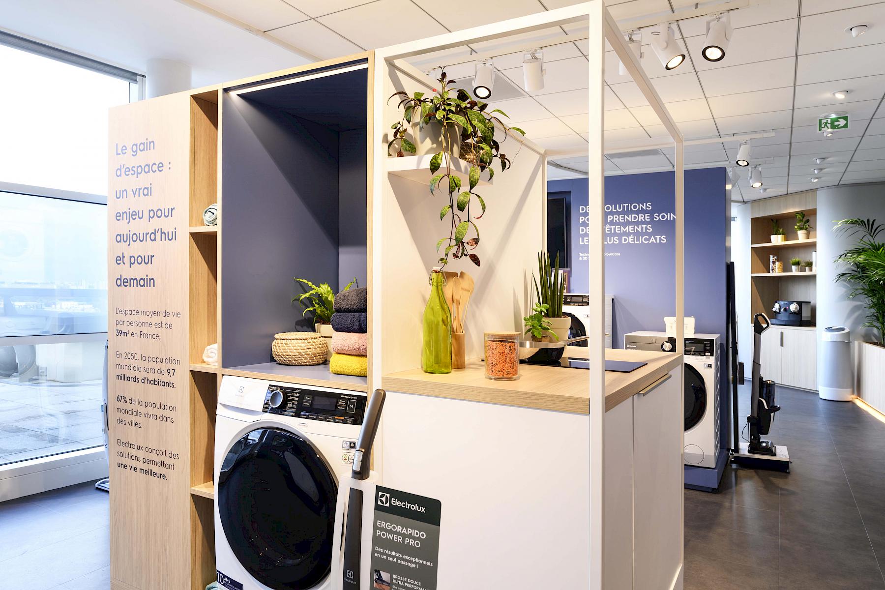 Tout un showroom dédié à la présentation des produits Electrolux en passant de la machine à laver, aux accessoires de cuisine. Un vrai nid d'animations et de produits ou les objets sans être glorifiés, sont mis en scène de façon dynamique et utile. L'agence Kardham a réalisé l'espace et soumis ses idées pour que le projet tienne budget et délais. Une belle collaboration Clients / Partenaires pour un résultat plus que convaincant !